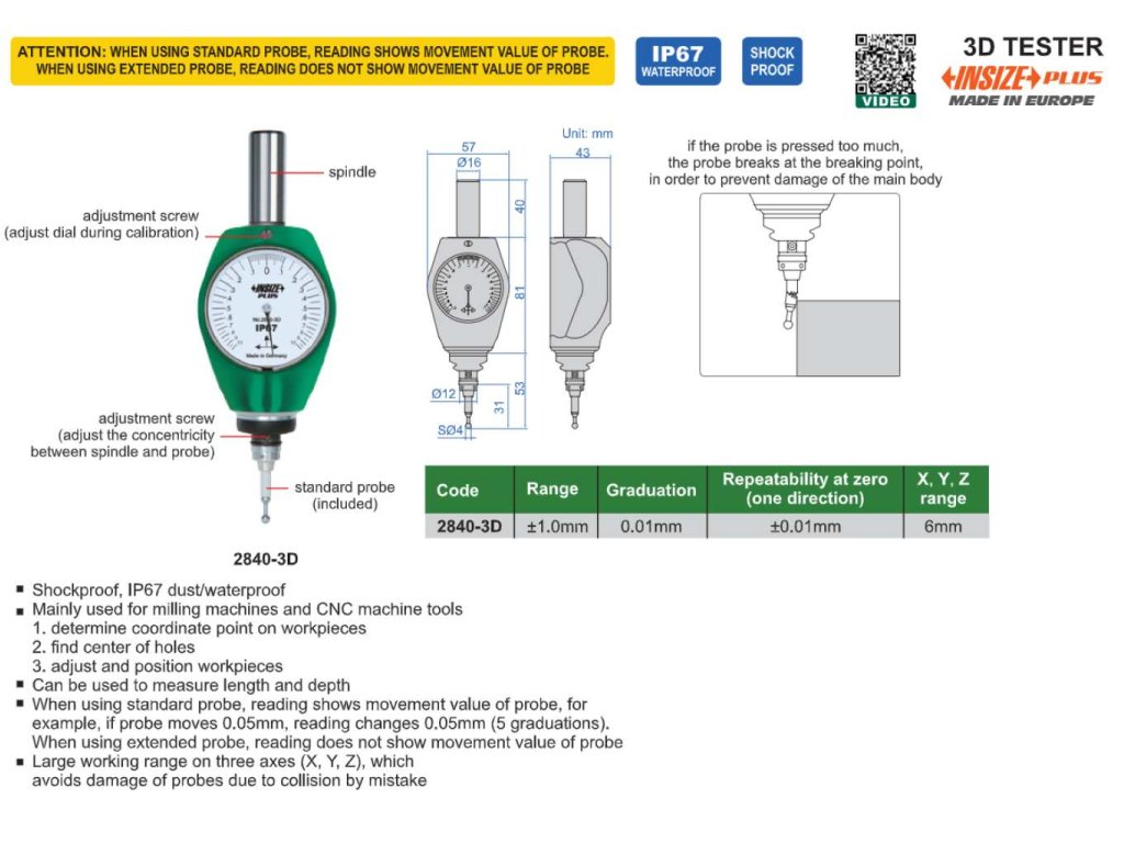 Az Insize 3D tapintó ütésálló, maráshoz és szikraforgácsoláshoz alkalmas. Használható mélység és hosszmérésre is.
