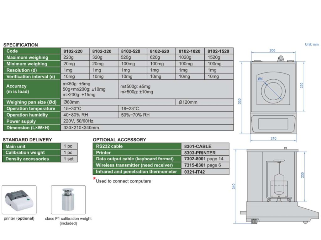 • Szállítmány tartalma: Főegység, kalibráló súly, sűrűség kiegészítők