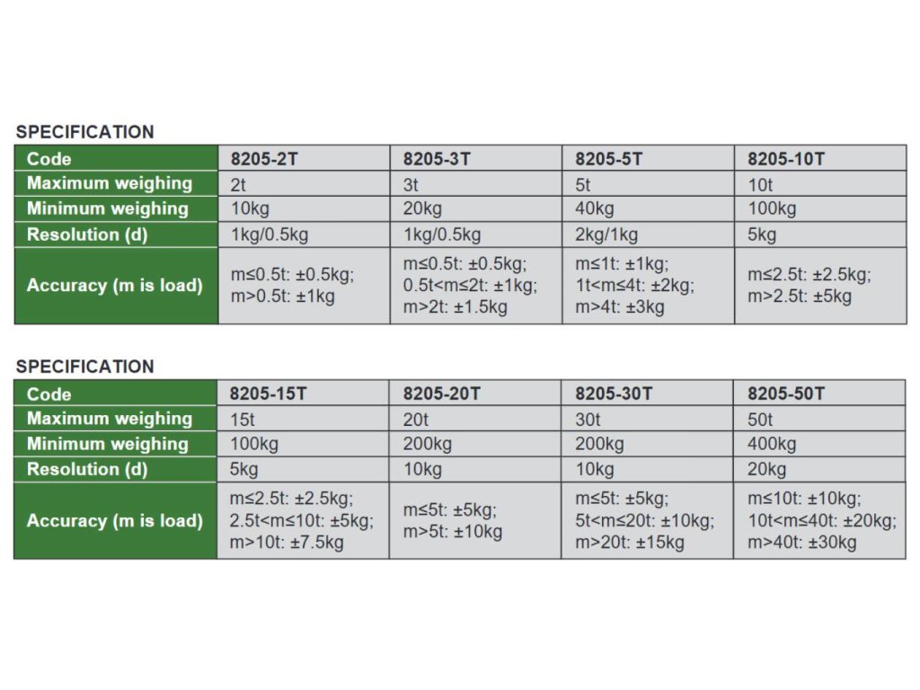 • Pontosság: m≤2.5 t: ±2.5 kg, m>2.5 t: ±5 kg