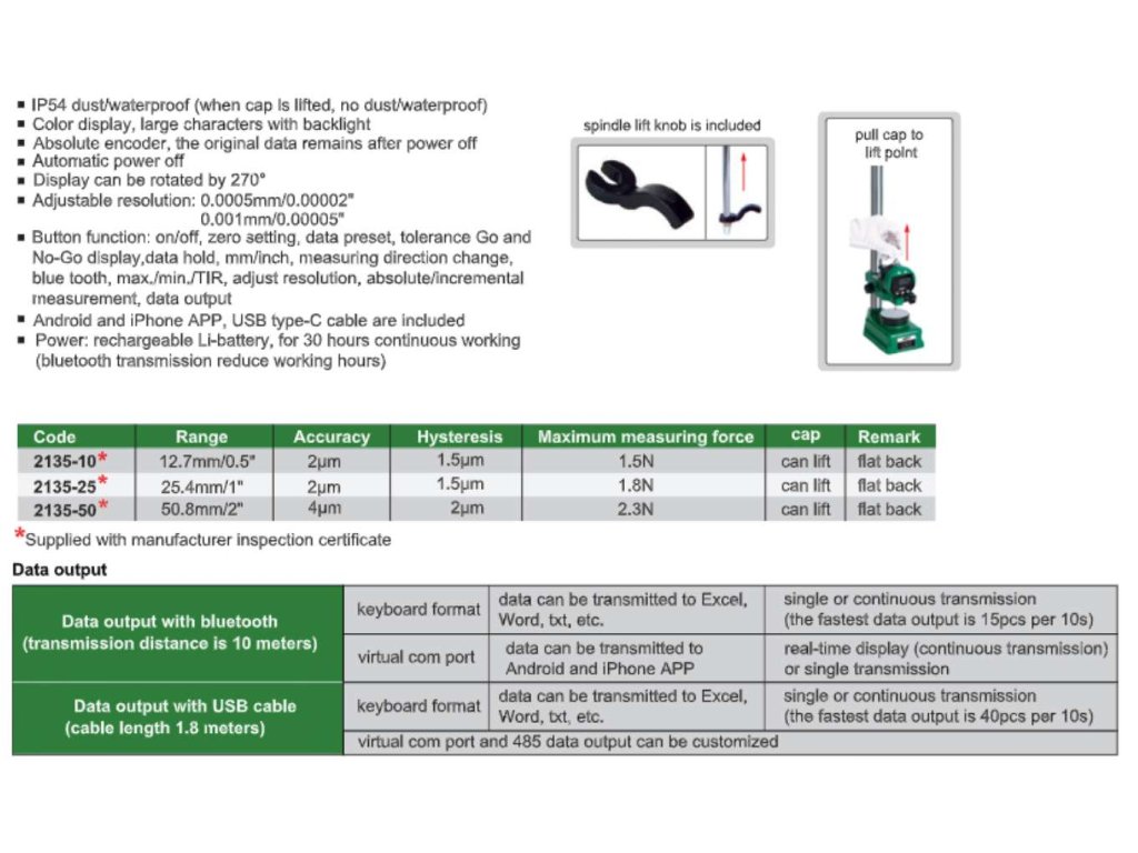 Az Insize nagy pontosságú digitális mérőóra IP54 védetséggel rendelkezik, betelepített bluetooth adóval és az abszolút kódoló segítségével az adatok kikapcsolás után is megmaradnak.