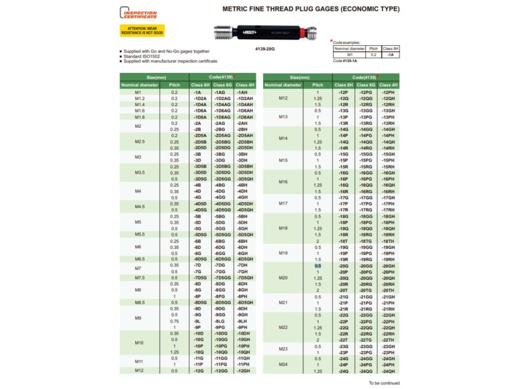 Az Insize "OK/NOK" kétoldalú dugós menetidomszer a metrikus ISO menetek megy/nem megy tűrés ellenőrzéséhez alkalmas.
