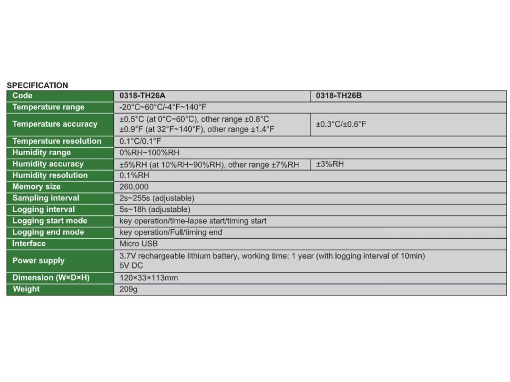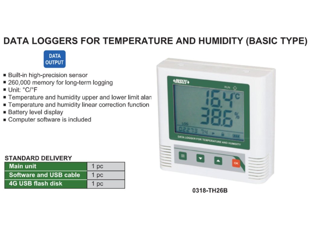 Az Insize hő és páratartalom mérő adatgyűjtővel nagy pontosságú beépített szenzorral rendelkezik. Alsó és felső határérték riasztástóval van.