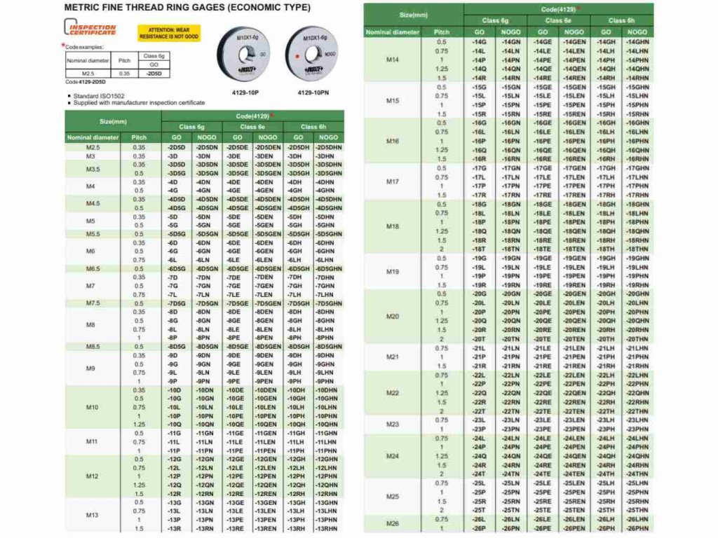 Az Insize "GO" gyűrűs menetidomszer a metrikus ISO menetek "megy" tűrés ellenőrzéséhez alkalmas.