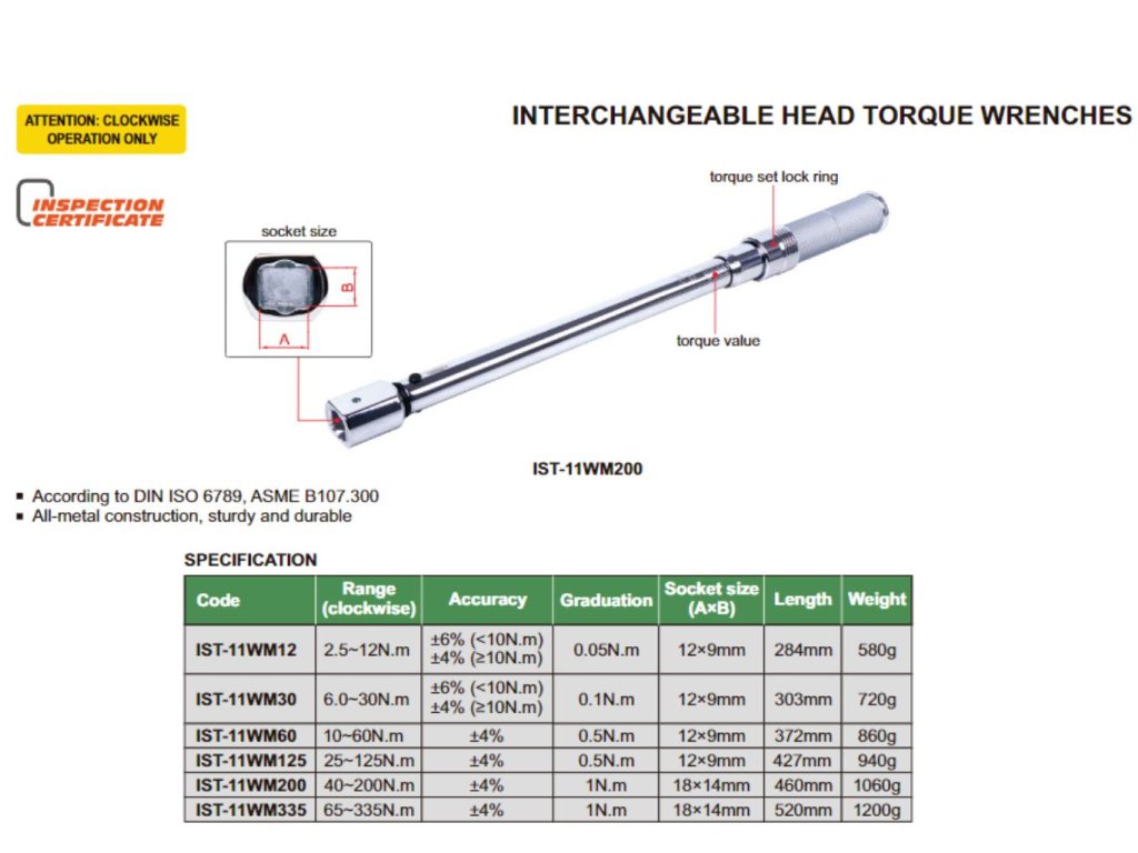 • Használható az IST-11WM200 és IST-11WM335 nyomaték szárakkal