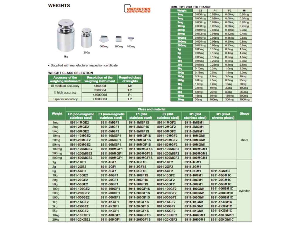 Az insize F1 pontossági osztályú súly rozsdamentes acélból készült és az analitikai mérlegek kalibrálásához alkalmas, melyeknél az osztásköz nagyobb mint 30000 d és kisebb mint 100000 d.