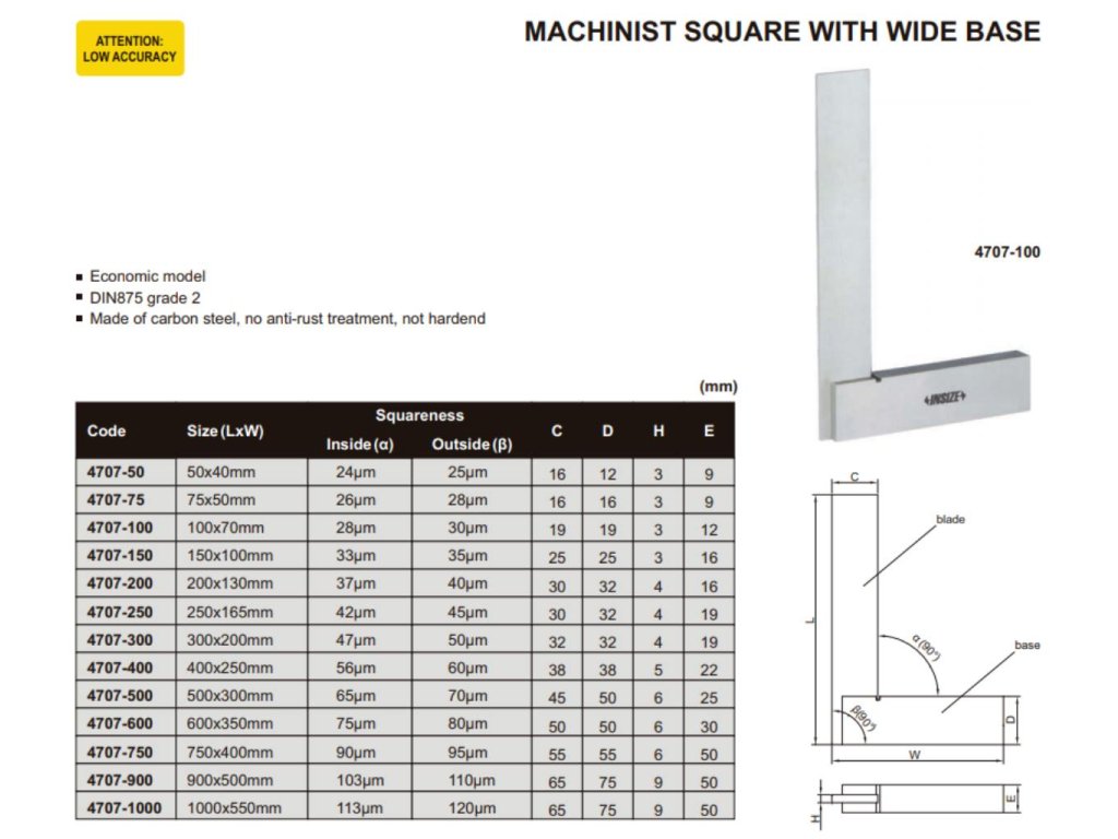Az Insize széles talpú gépész derékszög gazdaságos kivitelezésű és szénacélból készült.